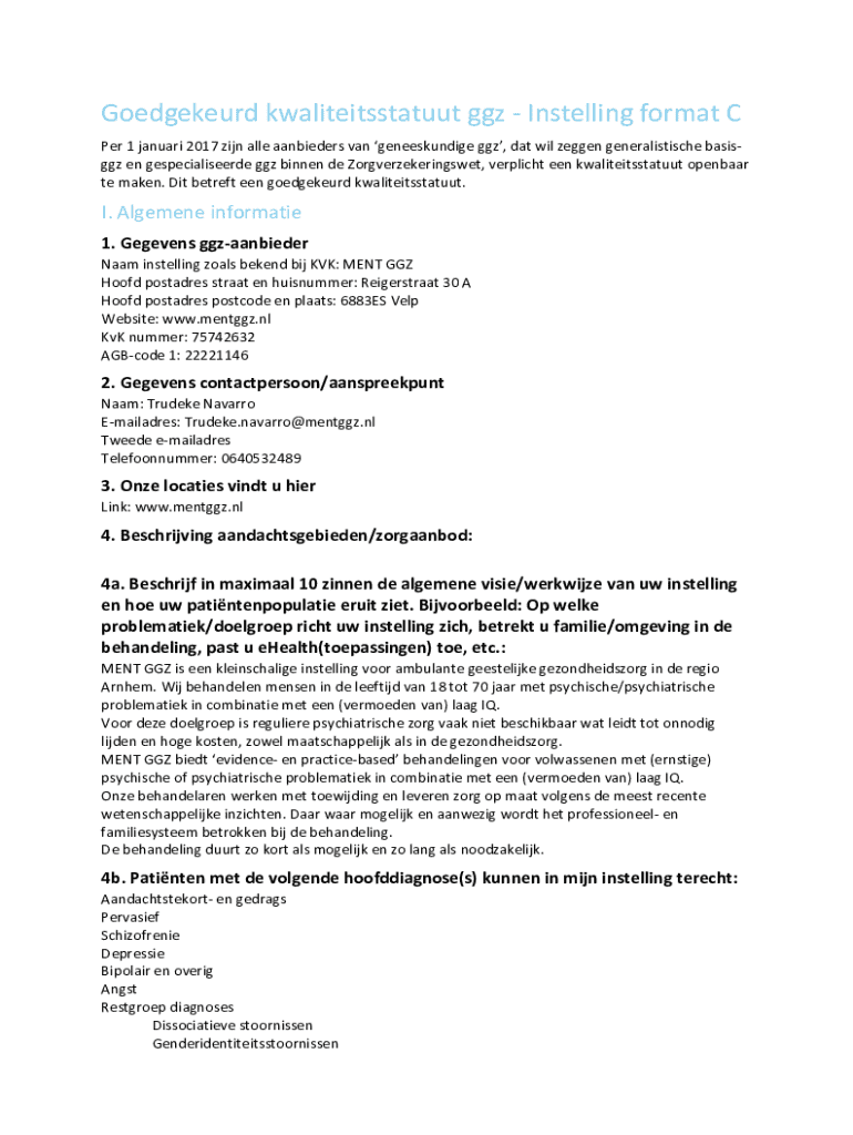 Pak de gratis MODEL KWALITEITSSTATUUT GGZ