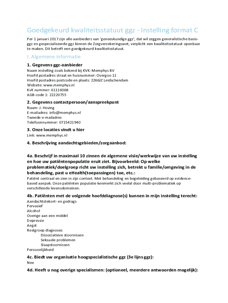 Wat is naam instelling zoals bekend?