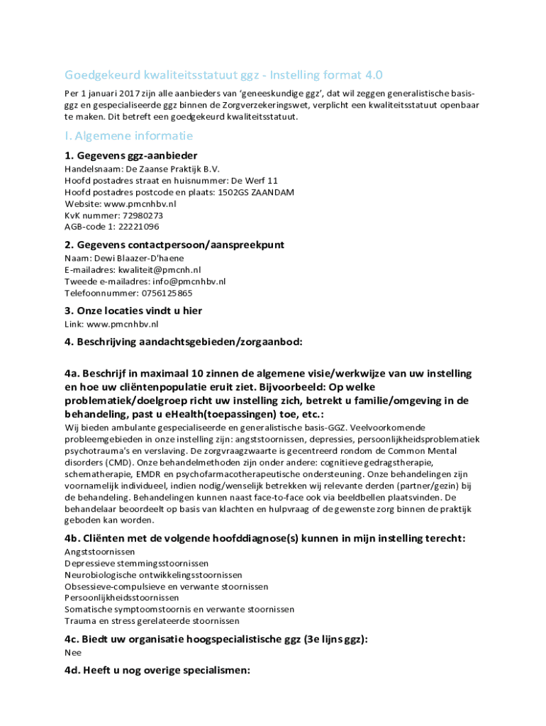 Pak de gratis Goedgekeurd kwaliteitsstatuut ggz - Instelling format 4