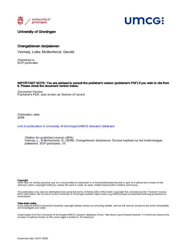 Pak de gratis University of Groningen Overgebleven dorpsleven Vermeij, ...