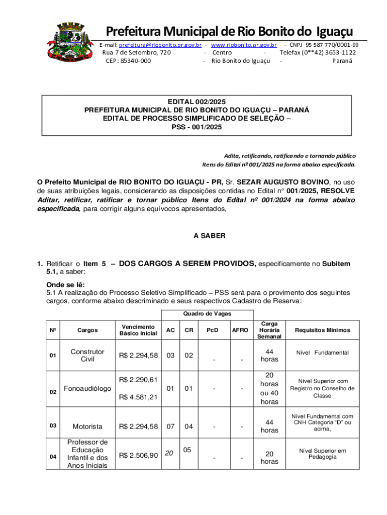 Quais informações devem ser informadas em prefeitura municipal de rio?
