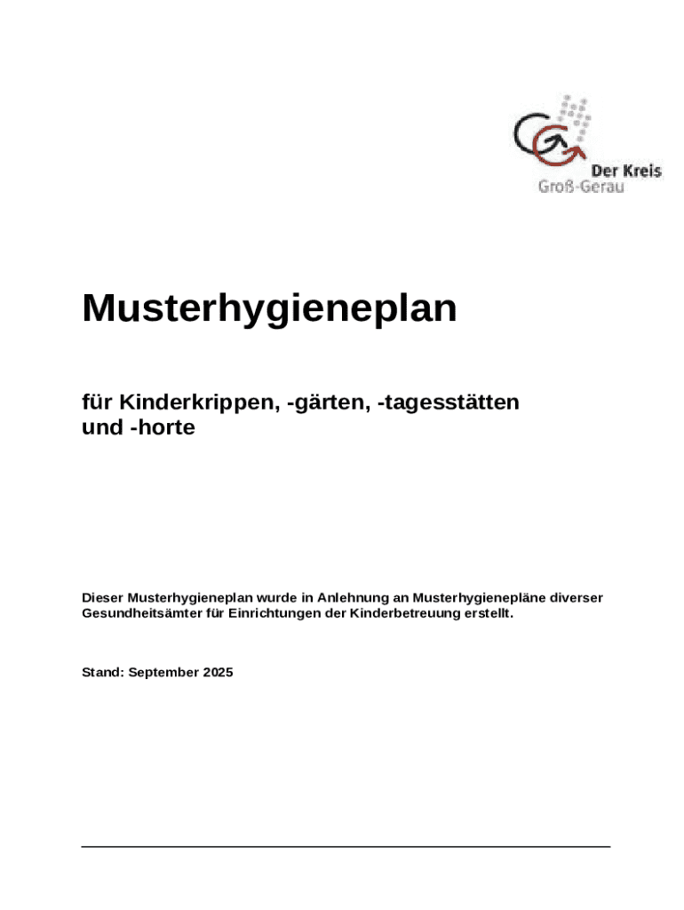What is Dieser Musterhygieneplan wurde in Anlehnung an Musterhygieneplne diverser Gesundheitsmter fr Einrichtungen der Kinderbetreuung erstellt Form?
