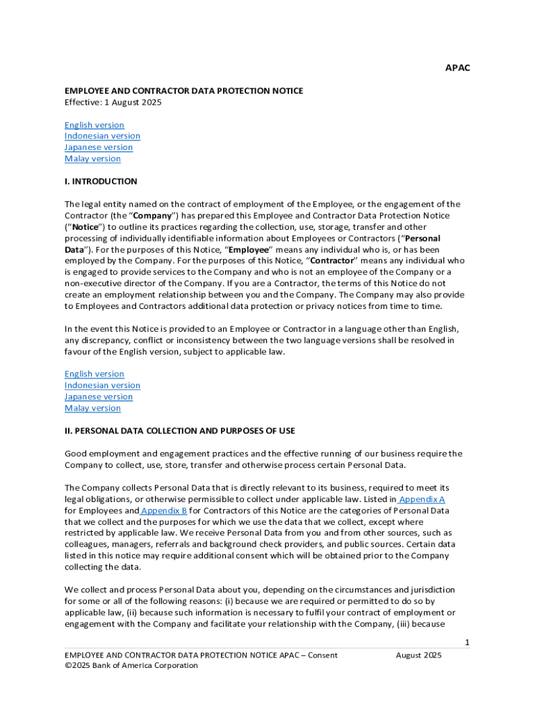 Get the free Thailand Employee and Contractor Data Protection Notice