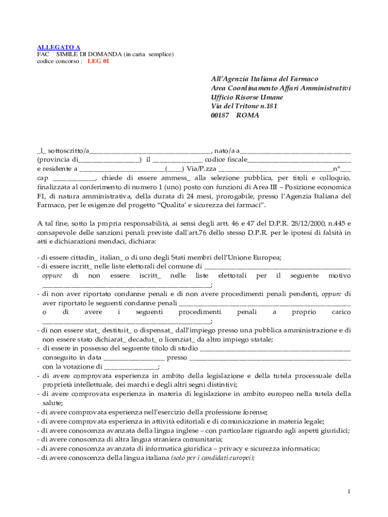 Ottieni il gratuito DOMANDA DI PARTECIPAZIONE (in carta semplice) All. A)
