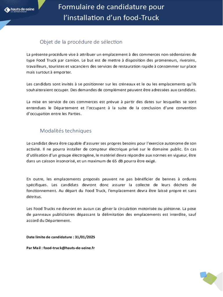 Obtenir le gratuit Formulaire de candidature pour l'installation d'un food-Truck