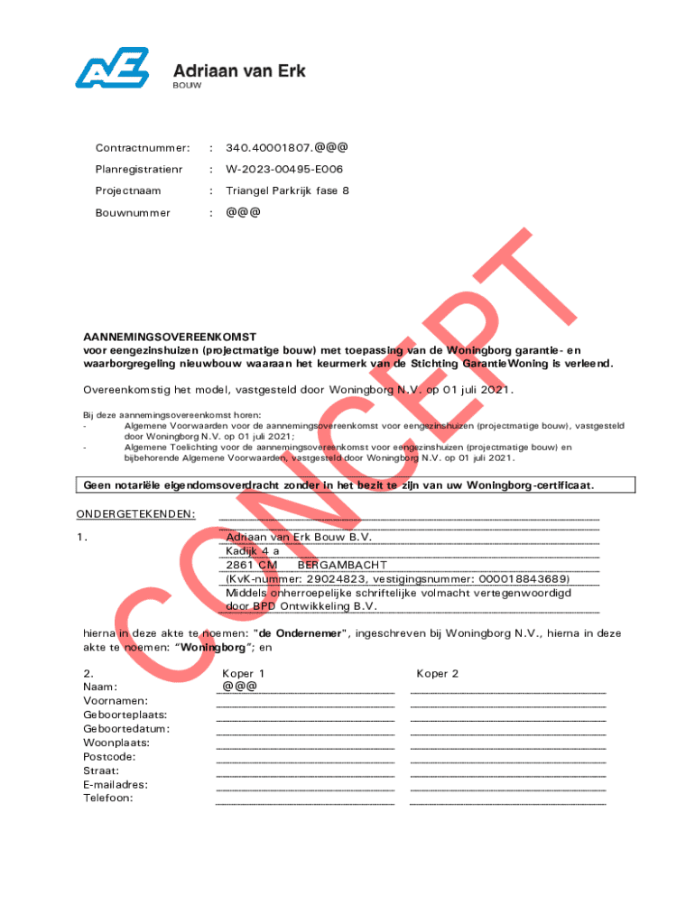 Pak de gratis Concept aannemingsovereenkomst Parkrijk fase 8