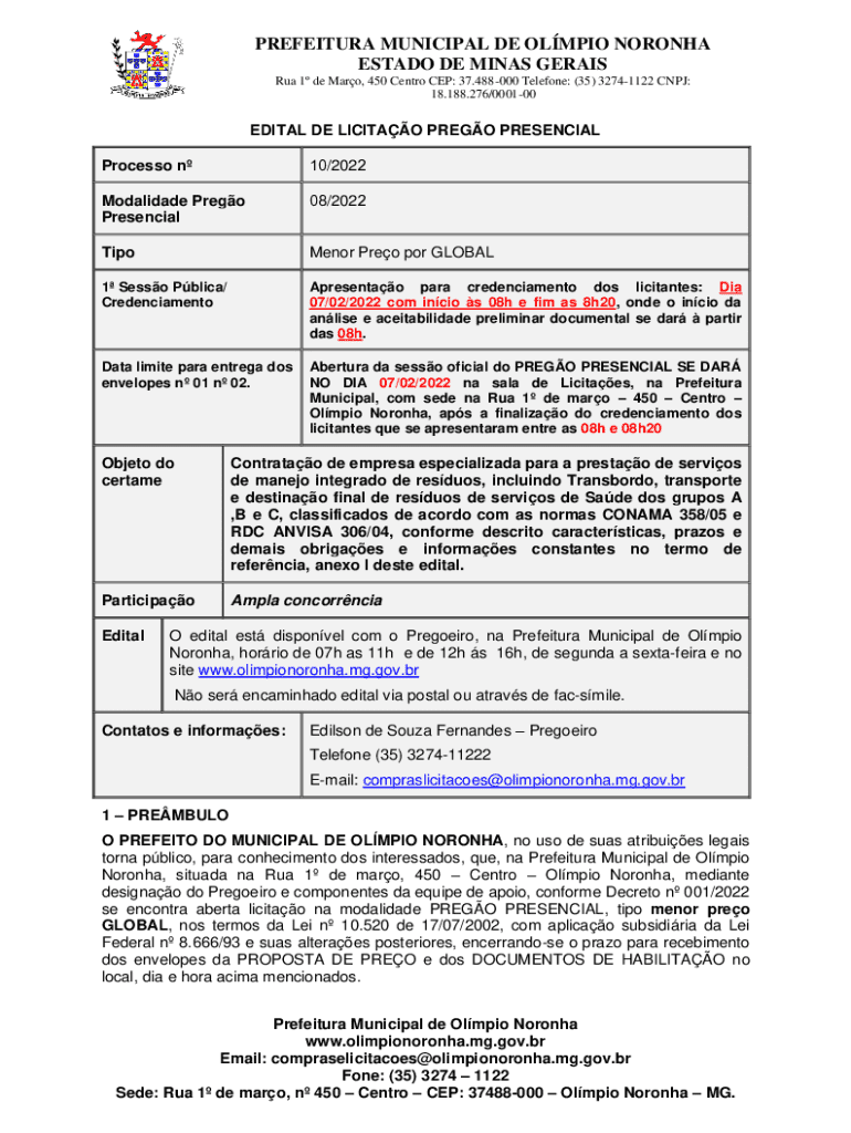Obtenha o gratuito Apresentao para credenciamento dos licitantes: Dia