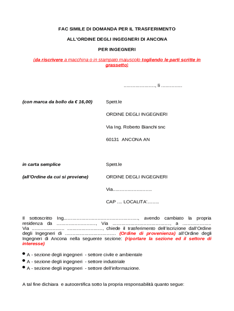 Fac-Simile Domanda per Trasferimento Form: A Comprehensive Guide