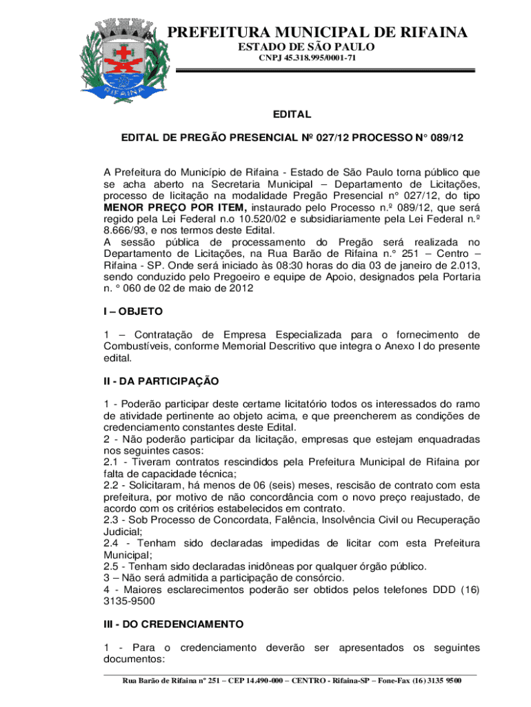 Como preencher edital de prego presencial
