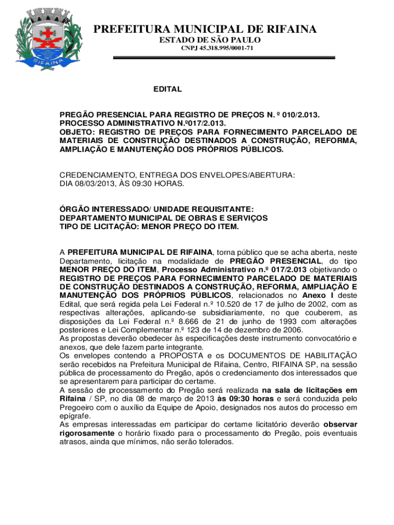 Obtenha o gratuito MATERIAIS DE CONSTRUO DESTINADOS A CONSTRUO, REFORMA,