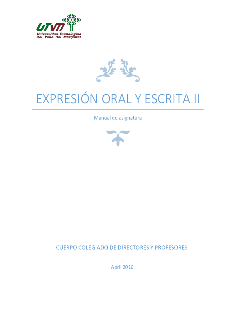 Obtener el gratis EXPRESIN ORAL Y ESCRITA II: Manual de Asignatura y ...