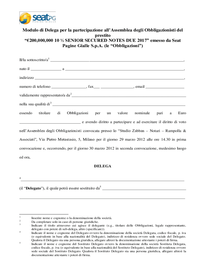 Ottieni il gratuito MODULO DI DELEGA per la partecipazione all'assemblea (l ...