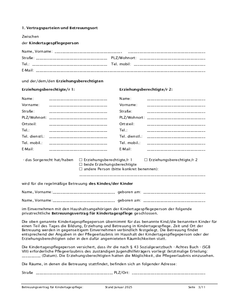 Wie fülle ich der betreuungsvertrag fr kindertagespflege aus?