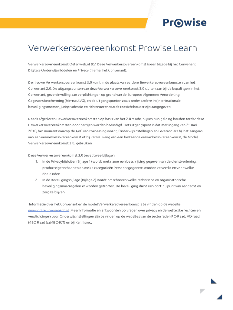 Verwerkersovereenkomst Prowise Learn Verwerkersovereenkomst Oefenweb.nl B.V. Deze Verwerkersovereenkomst is een bijlage bij het Convenant Digitale Onderwijsmiddelen en Privacy (hierna: het Convenant).De