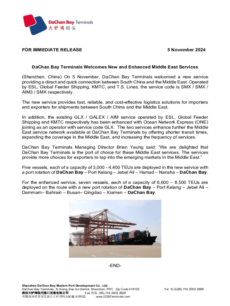 Get the free DaChan Bay Terminals Welcomes a New Asia Service