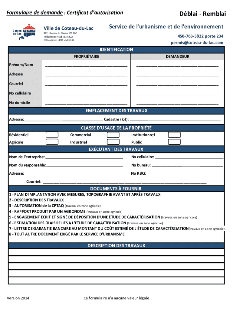 Obtenir le gratuit Permis et certificatsVille de Coteau-du-Lac