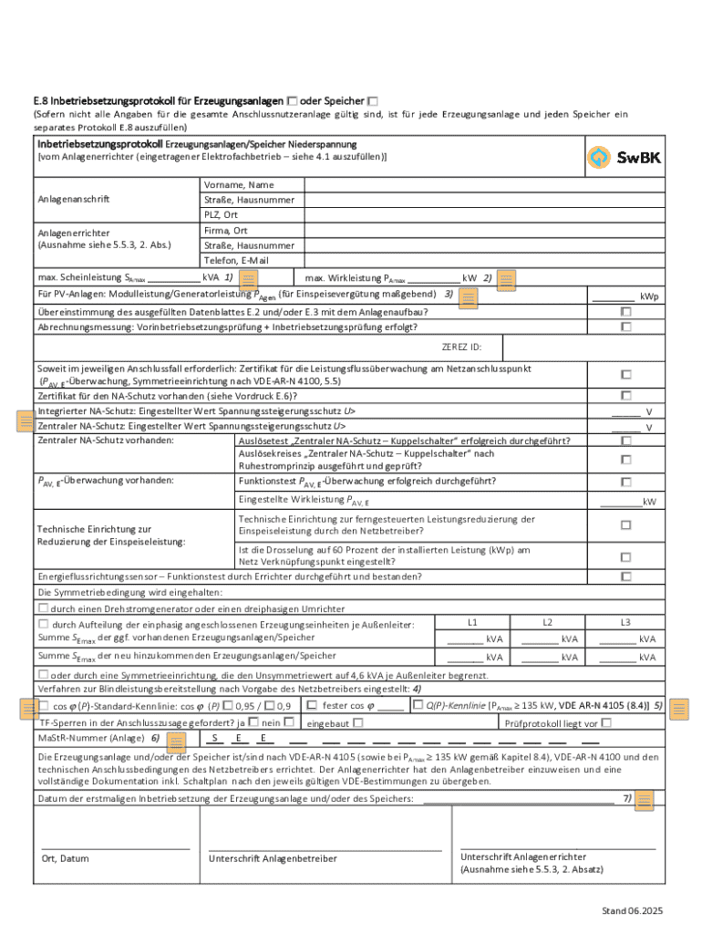 Wie fülle ich e8 inbetriebsetzungsprotokoll fr erzeugungsanlagen aus?