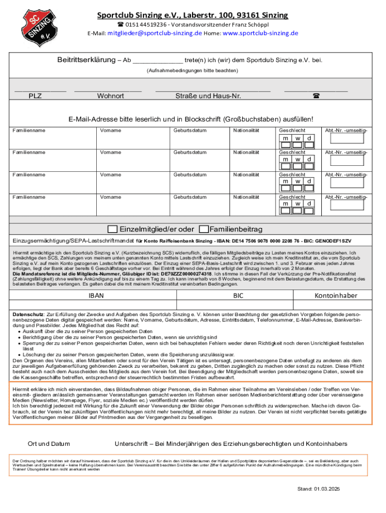 Holen Sie sich kostenlos trete(n) ich (wir) dem Sportclub Sinzing eV bei.