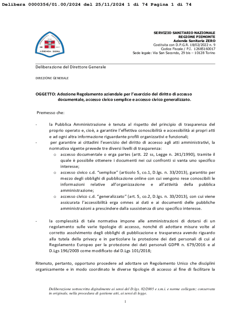 Ottieni il gratuito Deliberazioni - Azienda Zero
