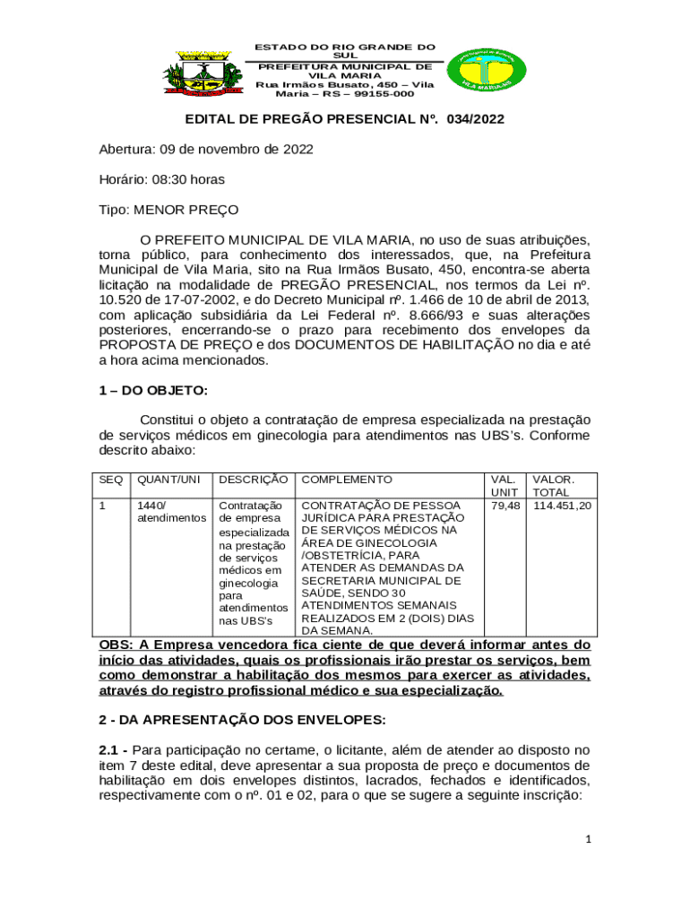 What is EDITAL PREGAO 034.doc Form?
