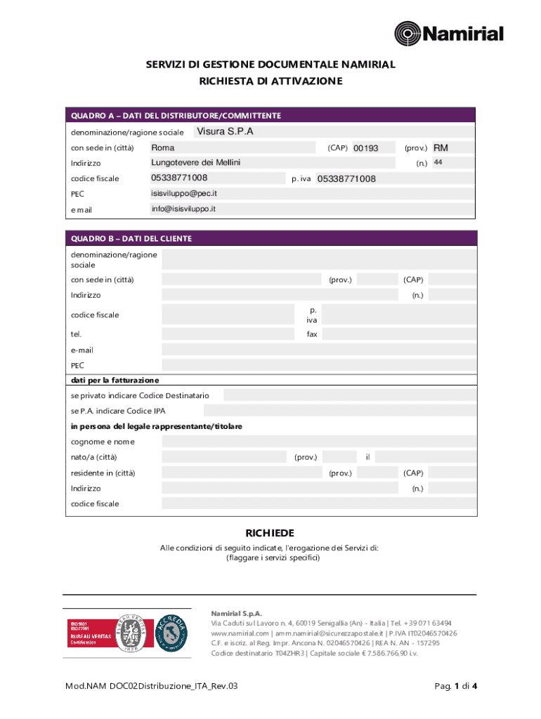 Ottieni il gratuito QUADRO A DATI DEL DISTRIBUTORE/COMMITTENTE