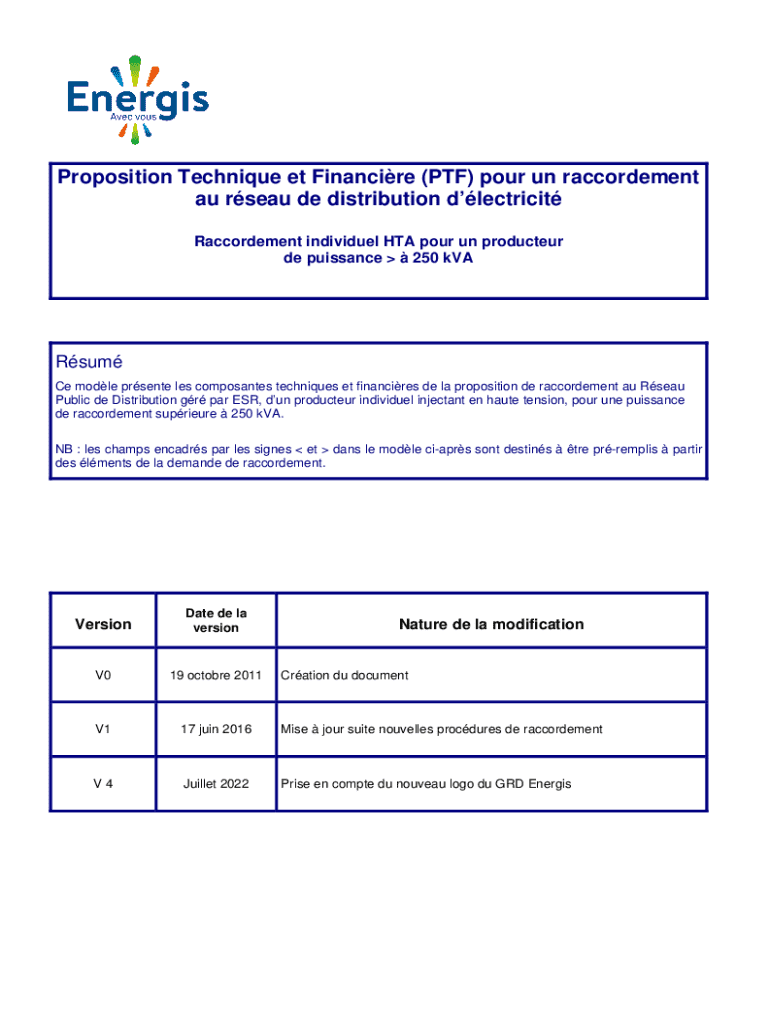 Obtenir le gratuit PTF pour le raccordement d'un site de production HTA