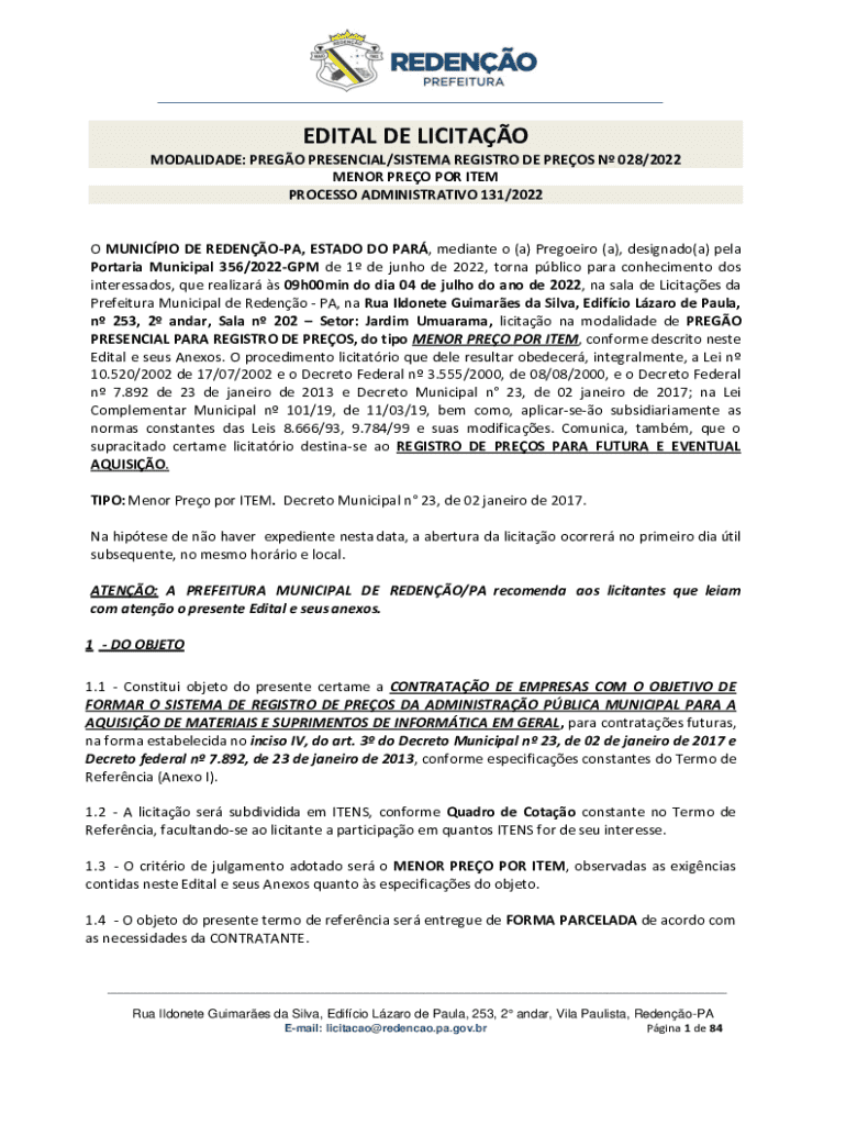 Obtenha o gratuito O MUNICPIO DE REDENO-PA, ESTADO DO PAR, mediante o (a) Pregoeiro (a), designad...
