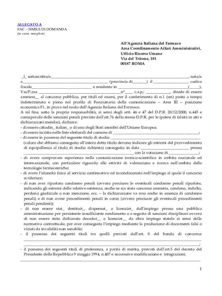 Ottieni il gratuito ALLEGATO A - FACSIMILE DI DOMANDA (in carta ...
