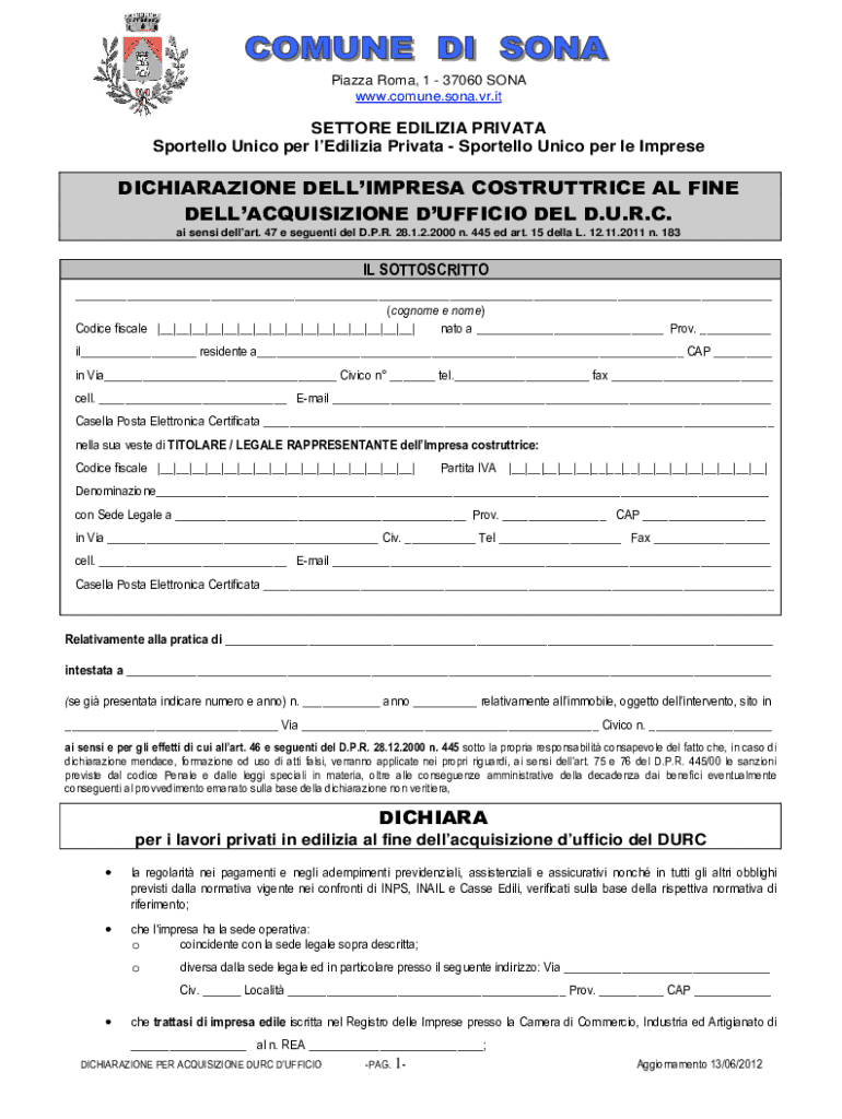 Ottieni il gratuito Dichiarazione impresa per acquisizione durc