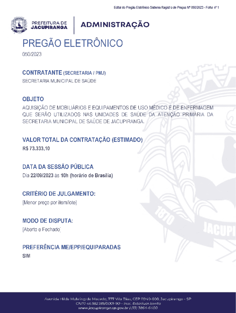 Obtenha o gratuito AQUISIO DE MOBILIRIOS E EQUIPAMENTOS DE USO MDICO E DE ENFERMAGEM