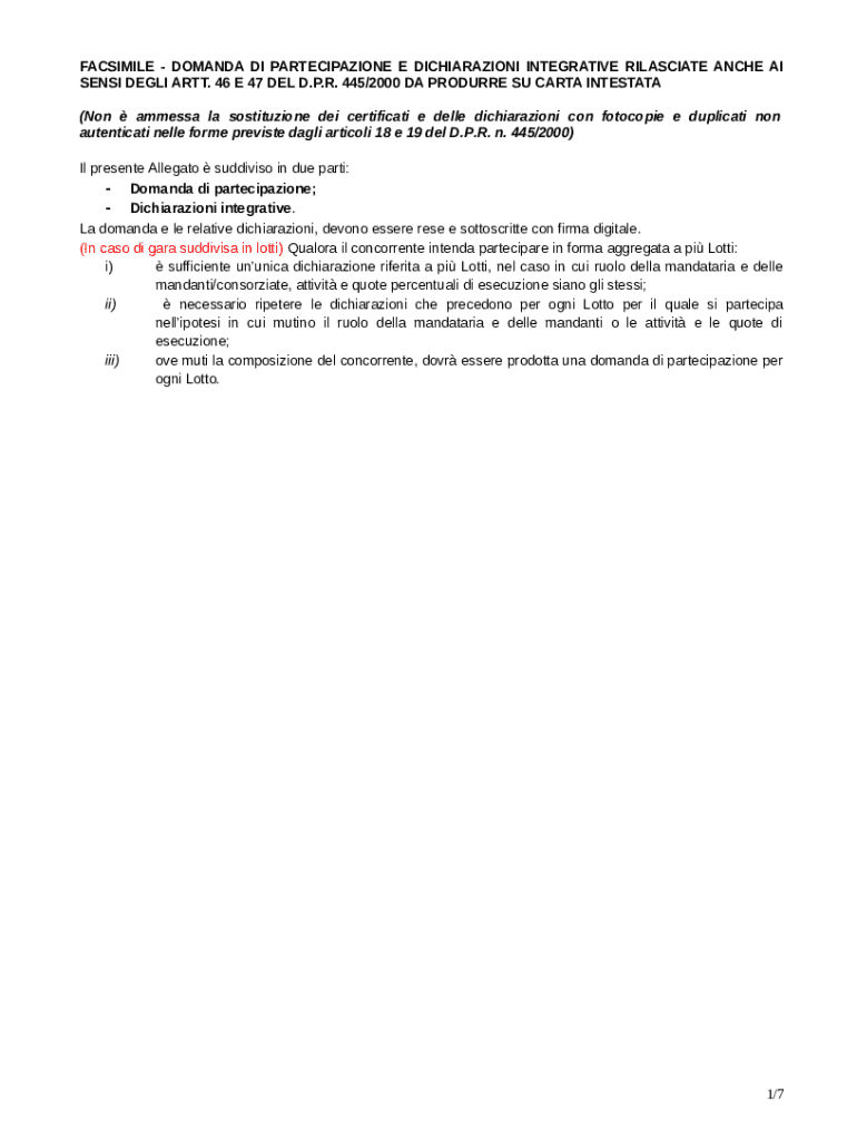 Instructions for the La dichiarazione fatta in una domanda di partecipazione ... form