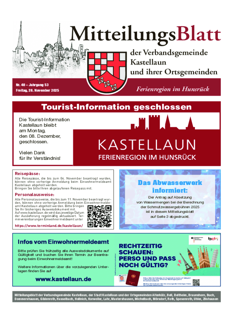 Holen Sie sich kostenlos Tourist-Information - Ferienregion Kastellaun