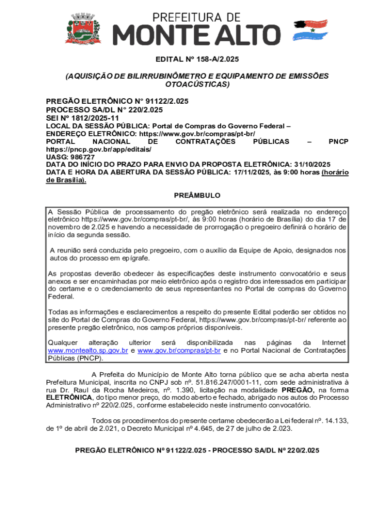 Obtenha o gratuito edital n 158-a/2.025