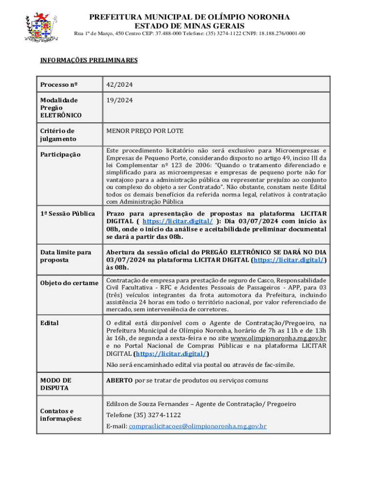 Obtenha o gratuito Este procedimento licitatrio no ser exclusivo para Microempresas e