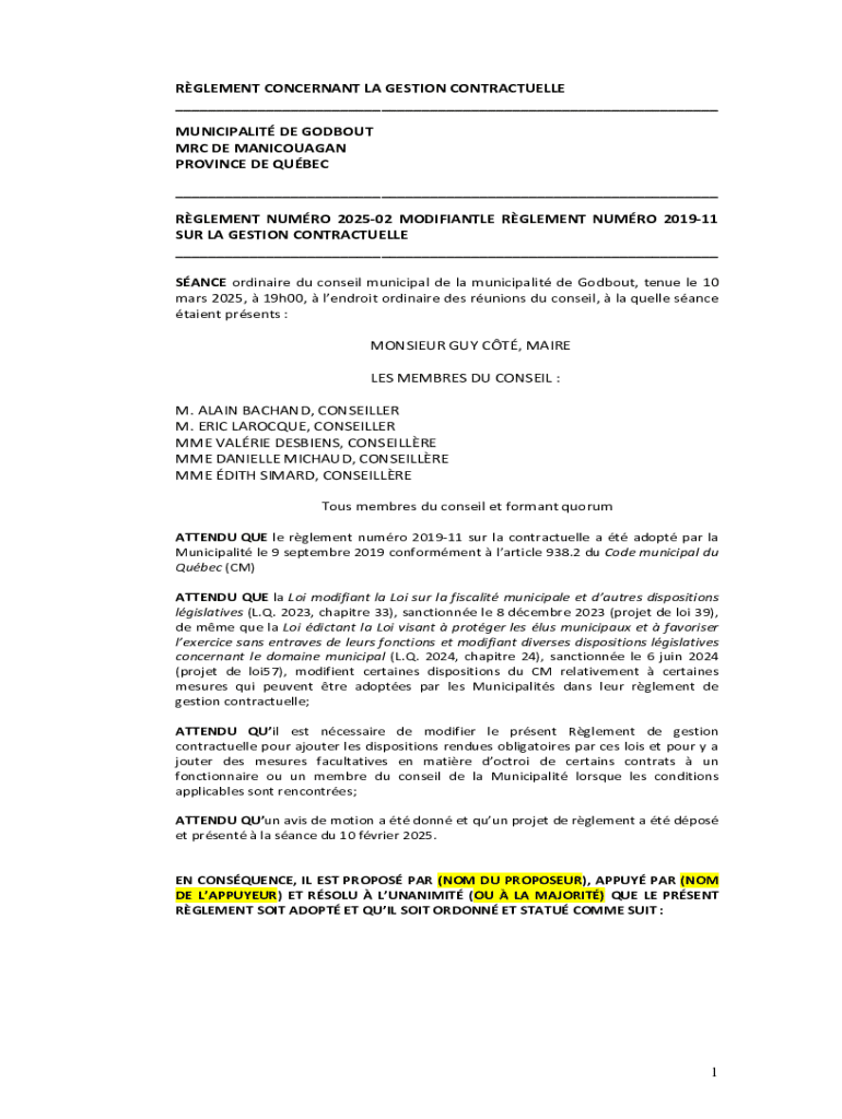 Obtenir le gratuit RGLEMENT CONCERNANT LA GESTION CONTRACTUELLE