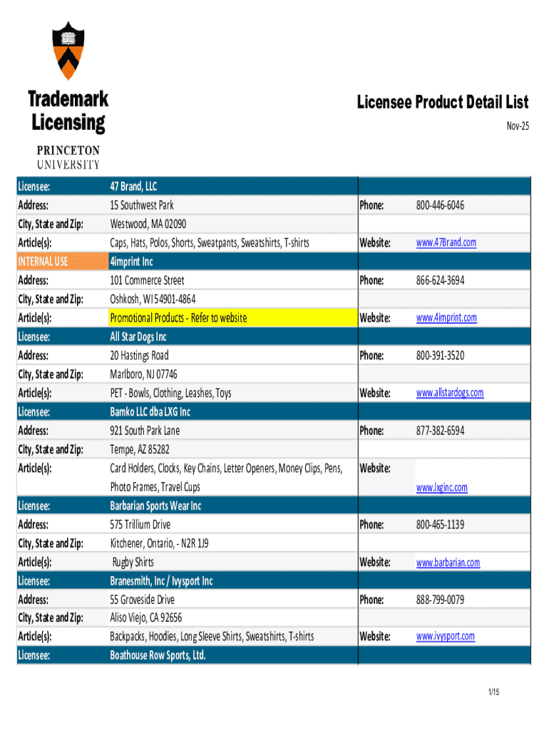 Get the free Licensee Product Detail List - Trademark Licensing