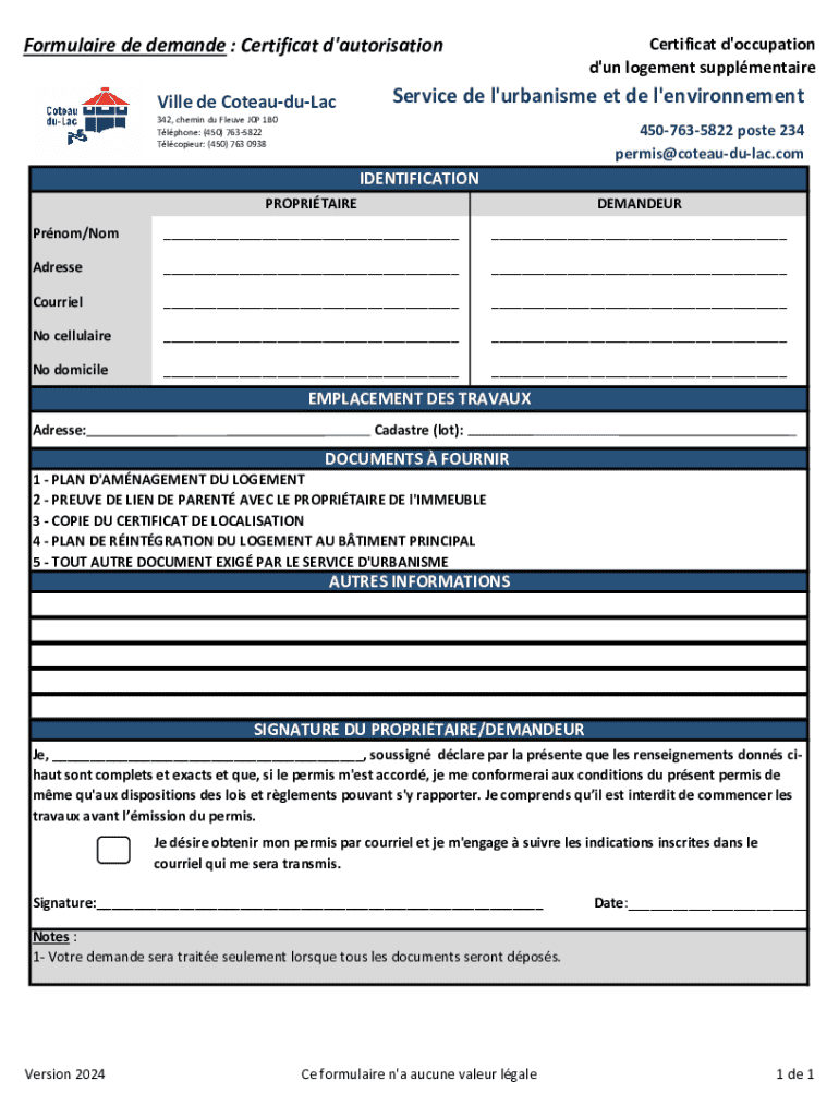 Obtenir le gratuit Formulaire de demande : Certificat d'autorisation