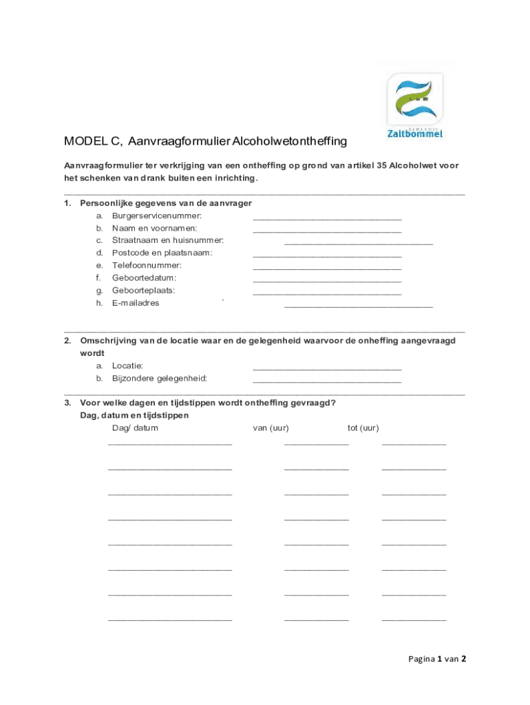 Pak de gratis Alcoholwet Model C - Aanvraagformulier art. 35 ontheffing