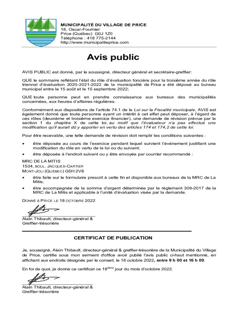 Obtenir le gratuit Municipalite De Price, 18 Rue Oscar-Fournier ...