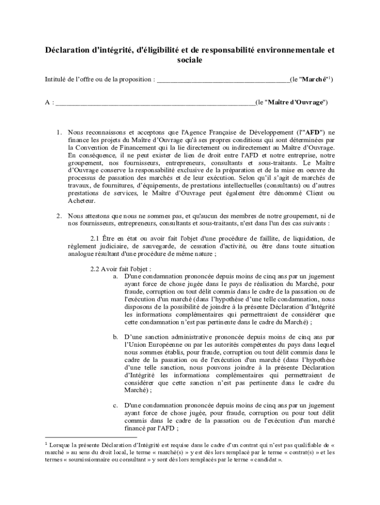 Obtenir le gratuit Annexe 1 - Dclaration d'intgrit