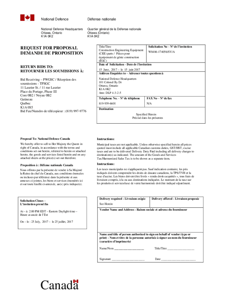 National DefenceDfense nationaleNational Defence Headquarters Ottawa, Ontario K1A 0K2Quartier gnral de la Dfense nationale Ottawa (Ontario) K1A 0K2REQUEST FOR PROPOSAL DEMANDE DE PROPOSITION RETURN