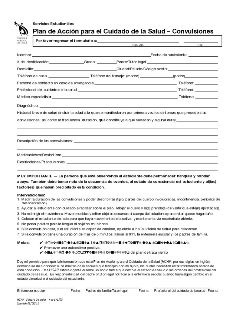 Obtener el gratis Plan de Accin para el Cuidado de la Salud Convulsiones - zac psdschools