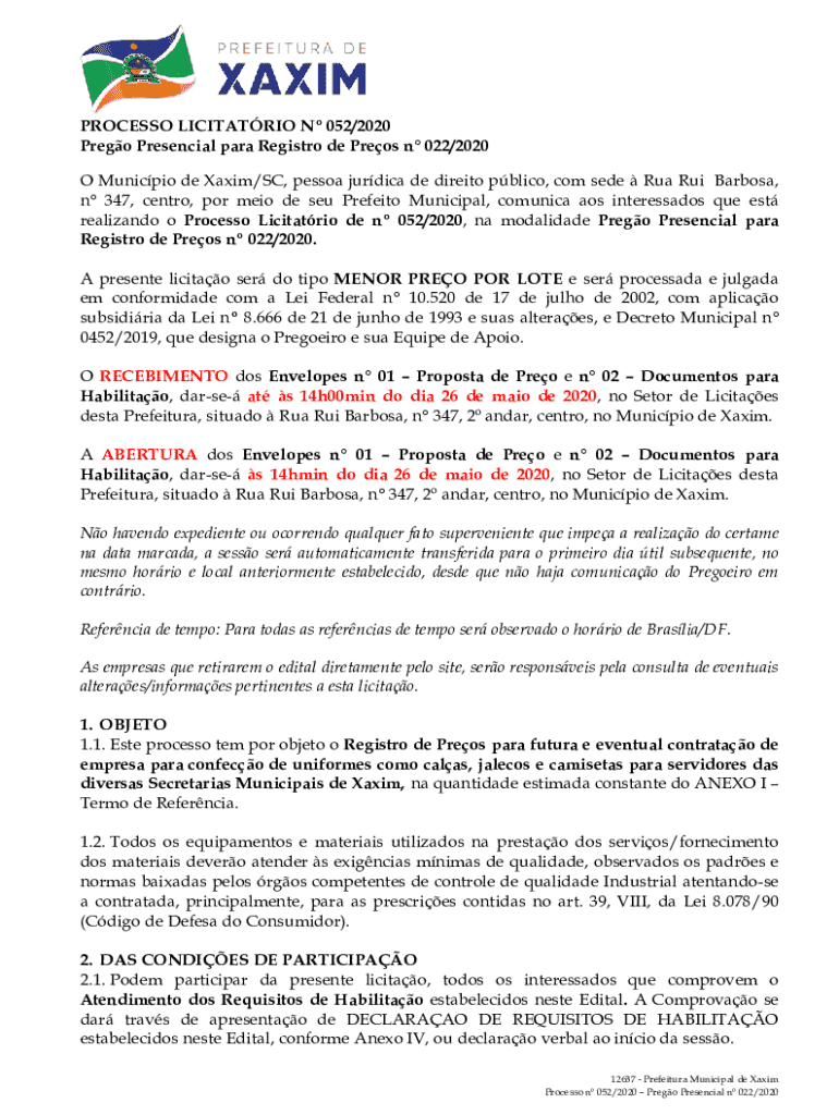 Obtenha o gratuito A presente licitao ser do tipo MENOR PREO POR LOTE e ser processada e julgada