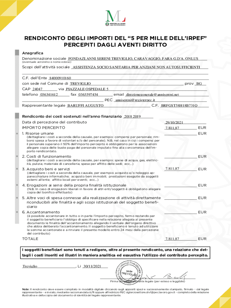 Ottieni il gratuito RENDICONTO DEGLI IMPORTI DEL 5 PER MILLE DELL'IRPEF ...