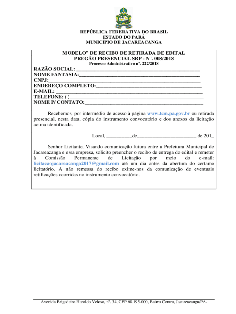 Obtenha o gratuito presencial, nesta data, cpia do instrumento convocatrio e dos anexos da licitao
