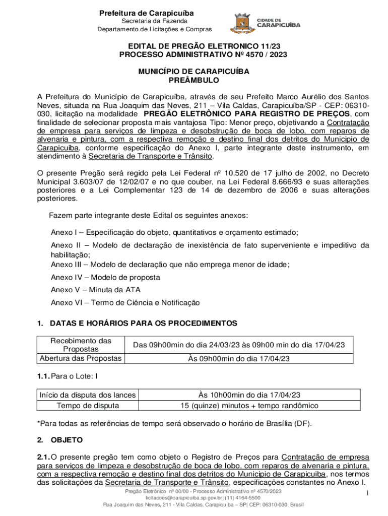 Obtenha o gratuito EDITAL DE PREGO ELETRONICO 11/23