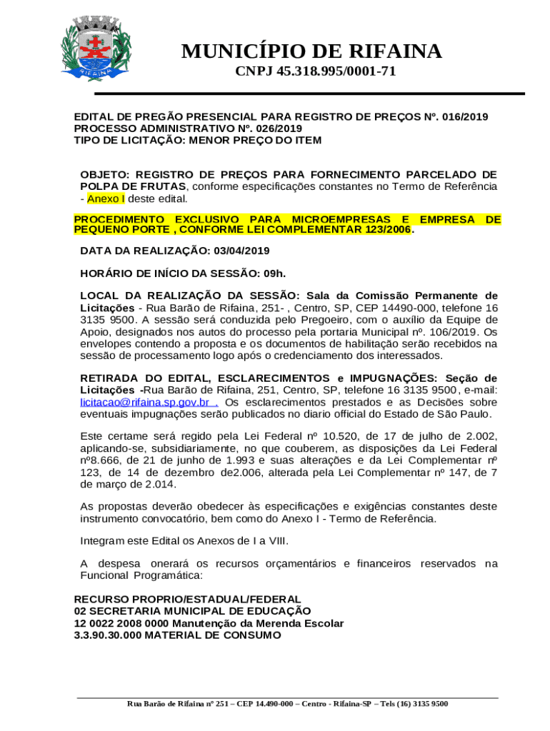 The edital de licitao. is a writable document required to be submitted to the relevant address in order to provide certain information. It must be filled-out and signed, which can be done manually, or via a certain solution e. g. PDFfiller. This tool lets you complete any PDF or Word document directly from your browser (no software requred), customize it depending on your requirements and put a legally-binding electronic signature. Right away after completion, the user can easily send the edital de licitao. to the relevant receiver, or multiple individuals via email or fax. The blank is printable as well from PDFfiller feature and options presented for printing out adjustment. Both in digital and in hard copy, your form will have a neat and professional appearance. It's also possible to turn it into a template for further use, there's no need to create a new blank form over and over. All you need to do is to amend the ready template.