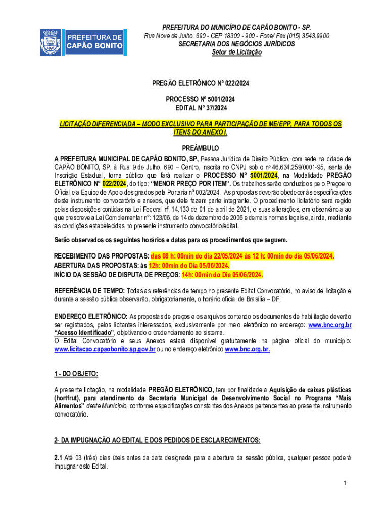 Para garantir que seu formulário de licitação esteja em conformidade legal e regulatória, é essencial revisar todos os detalhes antes de enviá-lo. A clareza e a exatidão são cruciais para evitar complicações futuras. Recomenda-se que você verifique se todos os campos estão devidamente preenchidos e se as instruções do edital foram seguidas rigorosamente.