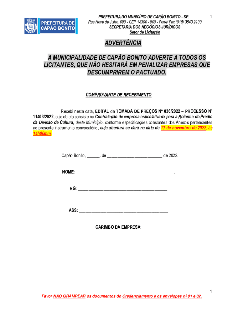 Obtenha o gratuito A MUNICIPALIDADE DE CAPO BONITO ADVERTE A TODOS OS