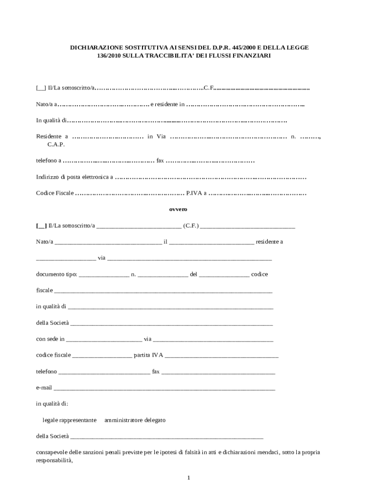 What is dichiarazione sostitutiva ai sensi Form?